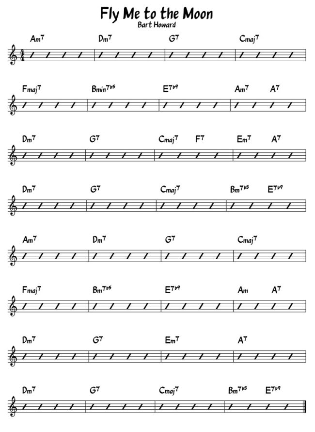 Practice Better! An approach to learning Jazz Standards Pt. 1 For these examples, I’ll be using “Fly me to the moon”, written by Bart Howard. If you’ve ever sat and watched a great Jazz guitarist, such as Jimmy Bruno, Pat Metheny, or Pat Martino, you’ll see these guys flying all over the fretboard. Their chord…
