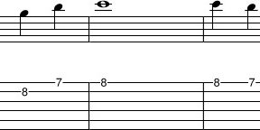 The third example adds some pull offs on the G and E string, and also adds an extra note “D”, which is not part of the arpeggio, but consistent with the chord.